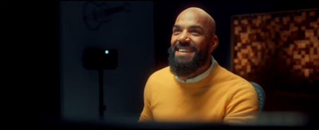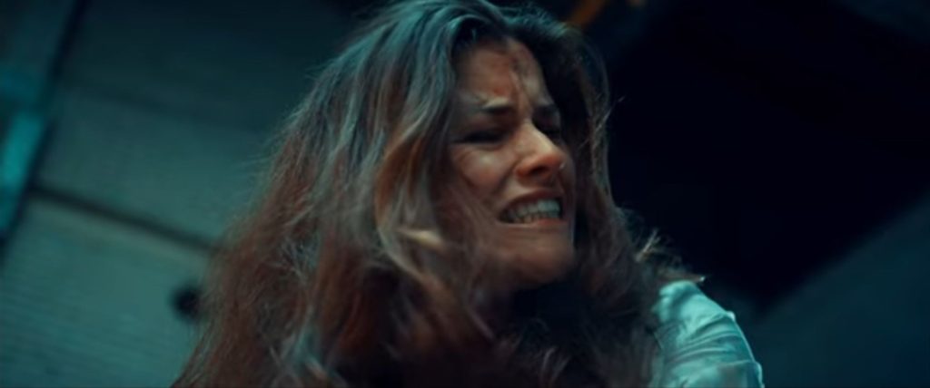 Un técnico de sonido disfruta en su estudio mientras ve sufrir en la pantalla a una mujer herida que está siendo perseguida. Repite las tomas una y otra vez para lograr que el sonido sea cada vez más realista.